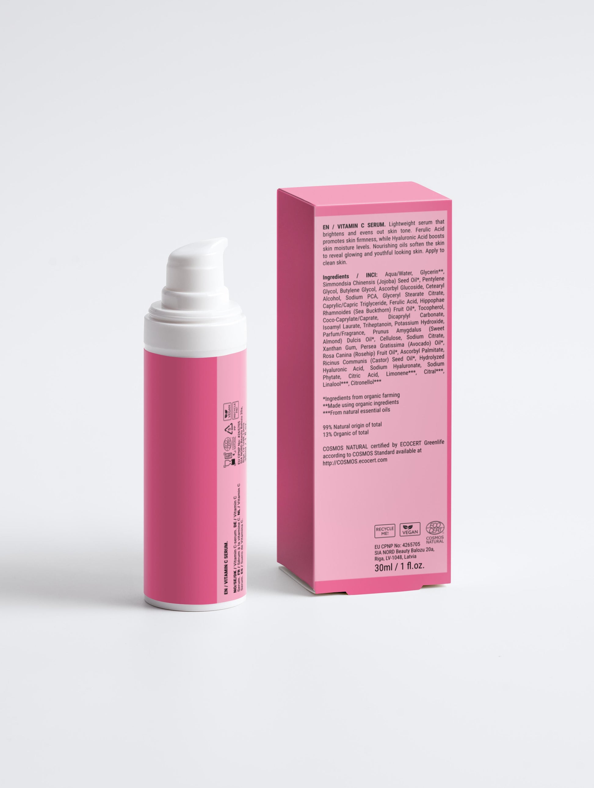Aqua/Water, Glycerin➁, Simmondsia Chinensis (Jojoba) Seed Oil➀, Pentylene Glycol, Butylene Glycol, Ascorbyl Glucoside, Cetearyl Alcohol, Sodium PCA, Glyceryl Stearate Citrate, Caprylic/Capric Triglyceride, Ferulic Acid, Hippophae Rhamnoides (Sea Buckthorn) Fruit Oil➀, Tocopherol, Coco-Caprylate/Caprate, Dicaprylyl Carbonate, Isoamyl Laurate, Triheptanoin, Potassium Hydroxide, Parfum/Fragrance, Prunus Amygdalus (Sweet Almond) Dulcis Oil➀, Cellulose, Sodium Citrate, Xanthan Gum, Persea Gratissima (Avocado) Oil➀, Rosa Canina (Rosehip) Fruit Oil➀, Ascorbyl Palmitate, Ricinus Communis (Castor) Seed Oil➀, Hydrolyzed Hyaluronic Acid, Sodium Hyaluronate, Sodium Phytate, Citric Acid, Limonene➂, Citral➂, Linalool➂, Citronellol➂